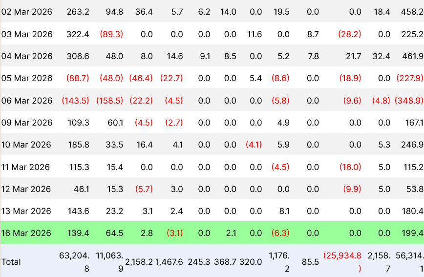 - Exchange-traded funds tracking Bitcoin have seen six consecutive days of capital inflows, accumulating $962.8 million starting March 9